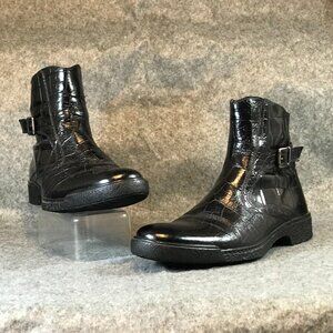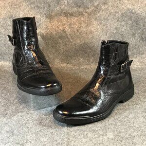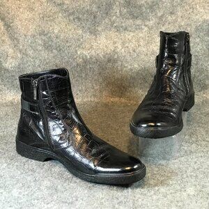 GOOD MAN Black Side-Zip Closure Plain Toe Non-Slip Fax Fur Insole Men's Ankle Boots