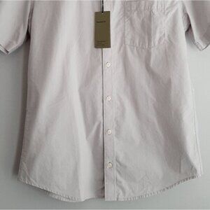 • Short sleeve button down shirt in light grey. Nice minimalist style that can be dressed up or down.