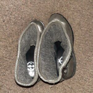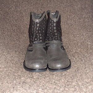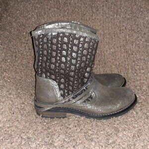 GOODSTEP-Portugal-Silver Crackled Leather/Fabric-Moto Boots-Pull-On-Sz 38-NM