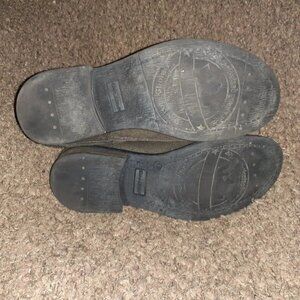 Size 38, about a 7.5, measures 10.5" via sole, 3 7/8th's" wide with a 1.5" heel.