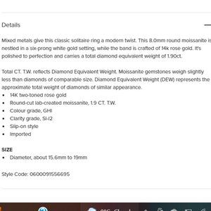 2 toned - Round brilliant cut diamond sits in a 6 prong 14k white gold high/tall setting and band is 14k rose gold