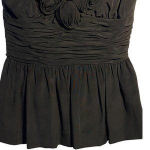 Absolutely gorgeous 100% silk fit and flare sleeveless dressy top from Kate Spade. Rosettes embellishment down front V neck, fully lined, gold side zip, size 0. In like new condition.