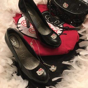 GORGEOUS pin up style platforms and earings with hello kitty crystal details!