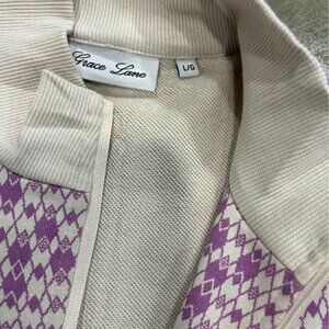 GRACE Lane woman’s golf jacket. Size large. NWT. Purple, off white. Mock neck, p