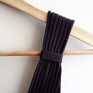 Hello Greek goddess! This pleated knit tank top with sexy plunging neckline will definitely add some Mediterranean style to your look. Small gauge knit with silk blend, feels very cooling to wear in hot weather. Classy dark maroon purple colour. Great for evening looks when pared with statement jewellery and a pencil skirt.