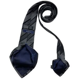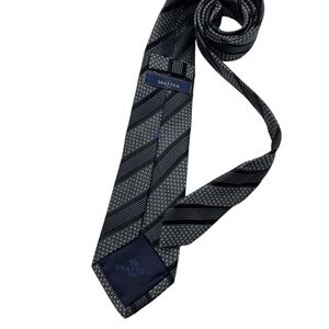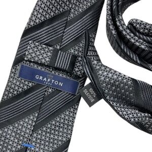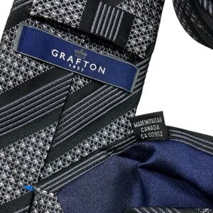 GRAFTON 1853 XL Black/Gray Striped Geometric Silk LUXURY Tie CANADA