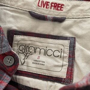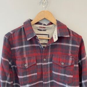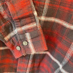Red and grey plaid flannel shirt