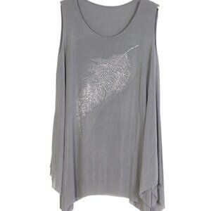 GRAND Sparkly Rhinestone Leaf Print Lined Sheer Tank Top Medium NWT