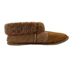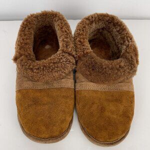GRAVEL FOURRURES Made in Canada Brown Suede Slippers With Sheepskin Lining 7