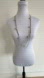 Graziano CN signed station necklace features four silver tone metal strands of various lengths with silver beads on one strand. Extender to adjust the length. Tag on the necklace has the Graziano CN signature with a copyright mark above it. Lobster claw closure.