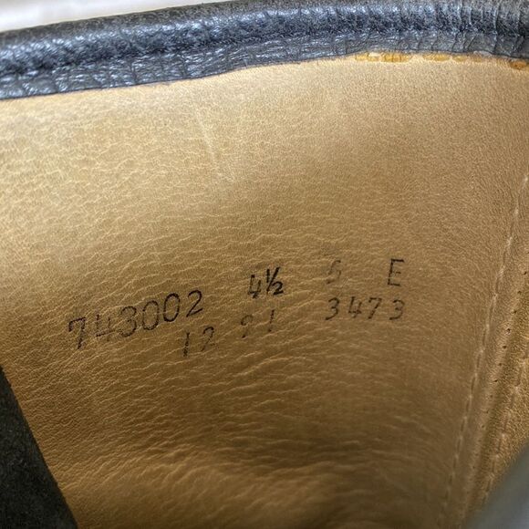 In excellent preowned condition army combat black leather boots, 9 eyelets, leather lined, comfortable footbed and Greb soles. These are marked men’s size 5 which correspond to a women’s size 6.5