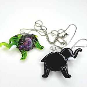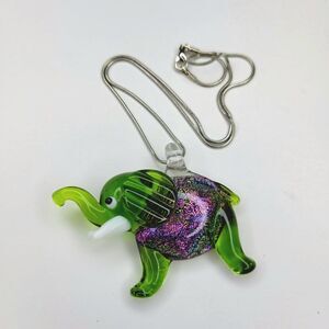 Green Glass Acrylic Elephant Pendant Necklace with shiny Purple gold specks