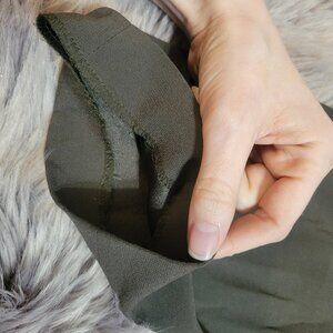 The grey photo shows the fit; the pants are GREEN, as shown. They are in good condition just need to be ironed. One hem came loose and needs to be stitched back up. They are very comfortable, versatile, and flattering pants. From Aritzia.