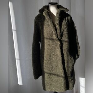 Cozy and stylish thigh length teddy jacket, to keep you warm. Soft, plush texture with a relaxed fit!