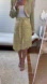 GREEN YELLOW WHITE PRINT SKIRT ARYMETRIC LINED ZIPPER TIE BELT OPEN FIT