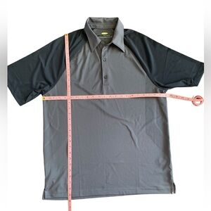 Two-tone grey golf polo by Greg Norman. PlayDry technology and 3-button placket. Men’s size MEDIUM.