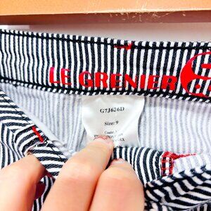 This GRENIER navy and white striped skirt brings an effortless, nautical-inspired touch to your everyday wardrobe. Made from a stretchy cotton blend, it offers comfort and movement while keeping a structured, casual look. The subtle red stitching adds a fun pop of contrast, making it easy to pair with a simple tee, a denim jacket, or a lightweight sweater. Perfect for warm-weather outings, weekend walks, or relaxed summer styling.