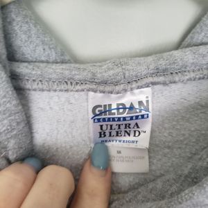 This hoodie is in very good used condition. Some minor staining at cuffs and small tear at cuff.