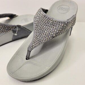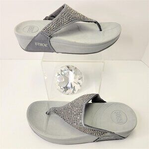 GREY Sandals Size 5 Sparkly Summer Wedge Sandals Arch Support Comfort Flip Flops