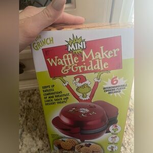 GRINCH Non-Stick Mini Waffle Maker & Griddle 6 Interchangeable Plates Red NEW