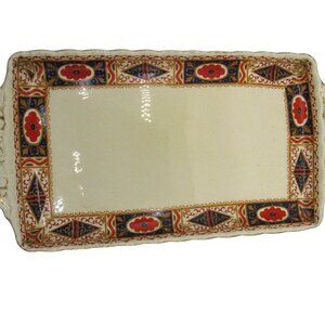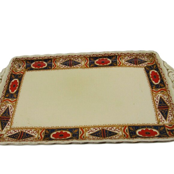 GRINDLEY CERAMIC Tray Ornate Handles Geometric Floral Border England Vintage 11"