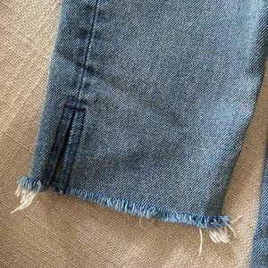 The Petite Karolina High-Rise Jean by GRLFRND features an of-the-moment high rise fit with shadow pocket detail and, 100% cotton fabrication, so they'll only get better with wear.. 100% cotton. Buttoned fly. Front and back pockets. Light fading and whiskering with ripped detail. Frayed slit hem. 14" / 36 cm at the knee narrows to 12" / 30 cm at the leg opening.