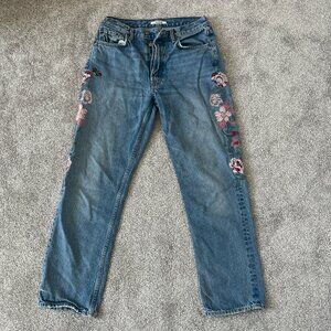 GRLFRND Denim Jeans with Butterfly and Floral Embroidery