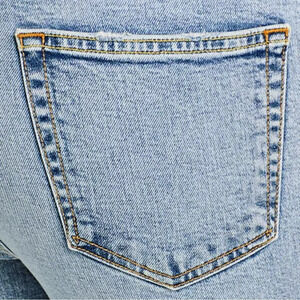 GRLFRND Kendall high-rise stretch skinny jeans in light acid wash. A classic style with an edgy twist, the Kendall jean embodies the perfect silhouette for any seasons look. Framed with light whiskering detail along the pockets edges, and intentional distressing/raw hem, these stretch fit bottoms will effortlessly become your next staple piece.