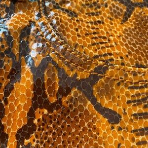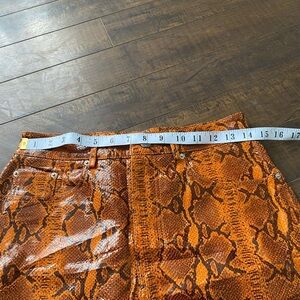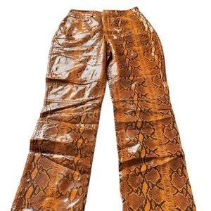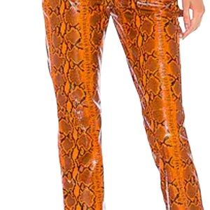 SNAKESKIN-PRINT STRAIGHT LEATHER TROUSERS IN ORANGE SNAKE