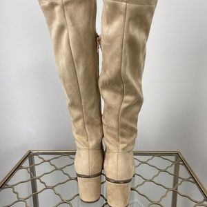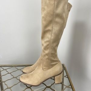 GROOVE Beige Faux Suede Go-Go Boots Stretch Boots Size 7.5, 2.75" Heel