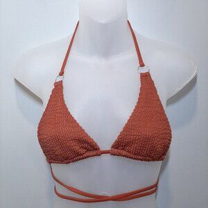 Fully lined, gorgeous auburn color compliments your tan, wavy ribbed texture and strappy ties add a chic sexiness that will turn heads.