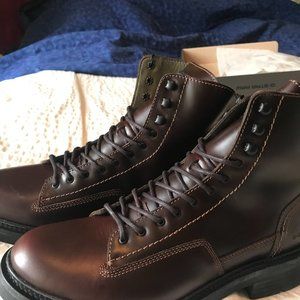 G-STAR RAW Roofer Boots brown/wine colour - size 11 (US)/44 (EU). Leather uppers, solid chunky sole, low ankle. Stunningly gorgeous!!! Brand New (still in box) and never worn. I ADORE THEM but they are too big for me. Perfect for a G-STAR lover or someone with amazing, funky kickass style.