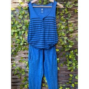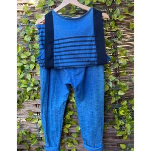 ~ Sleeveless Striped Bodice w/Lightly Elasticated Waist & Drawcord. Indigo Dye Jersey Cotton & Light Factory Distressing. Excellent Condition, Worn a couple of times only! Super cozy!