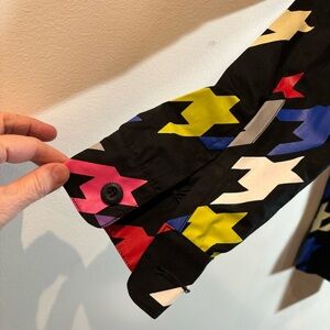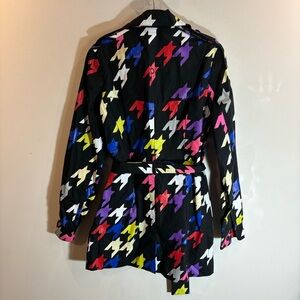 GSUS SINDUSTRIES Sz L Franny Colourful Large Print Houndstooth Pattern Belted Rain Coat. Cute and colourful for those days when you have to pep up. Dress up or down. Trendy pop of colour for your wardrobe.
