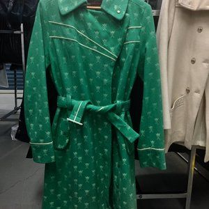 Very cool viking print wool coat made by Gsus Sindustries from Amsterdam. Gsus makes clothes that stand out, and this certainly does but in a classic shape/style that will take you from day to night and everywhere in-between. The viking print looks hand-stamped/printed so there is some unevenness, but it looks one of a kind and unique.
