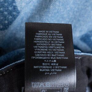 Features a striking blue denim wash with unique indigo-dyed laser print graphics throughout.