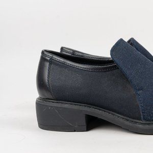 The Guardian loafers from G-Star RAW offer a tough silhouette with its mixed denim and faux leather paneling, and feature a high-quality Blake-stitch sole with a block heel, a closed rivet reinforced rounded toe, and elastication under the tongue.