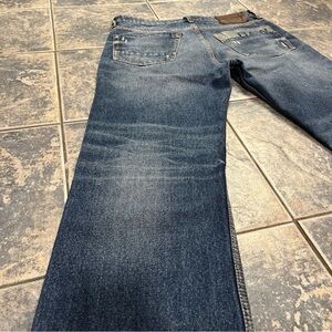 Here he have a beautiful pair of g raw denim Bronson slim chino pants in size 34/32. They are stone washed to look faded and worn. Very high quality pants with that baggy 90’s /y2K look. They are used and do have very minor imperfections and details should be observed with all the detailed pictures shown. If you have any questions I would be more than happy to answer them for you. Very hard to come by the American versions are earlier g raw , which are also much higher thicker higher quality and originally cost me over 200 dollars.