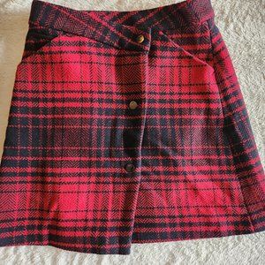 G-Star Raw red and black plaid check wool-blend skirt with black satiny lining.