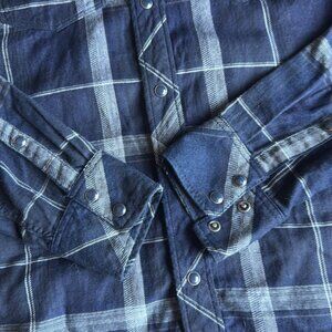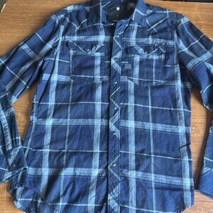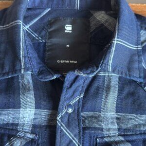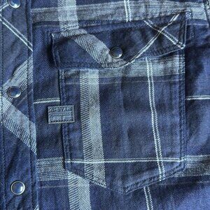G-Star Raw Medium Blue Plaid Design Snap Button Shirt