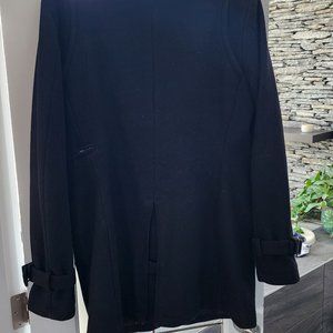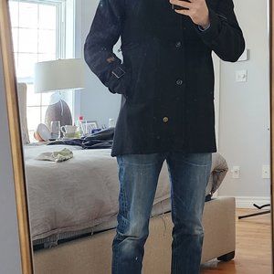 Used but in good condition. Tailored fit. No tears or rips in jacket or lining. Mirror dusty. I am 6'2" 195 lbs. Wear a 42-44 jacket.