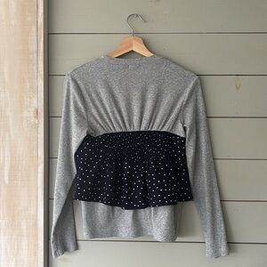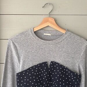Stylish gray top with a black polka dot accent. Perfect for casual outings or a chic office look.