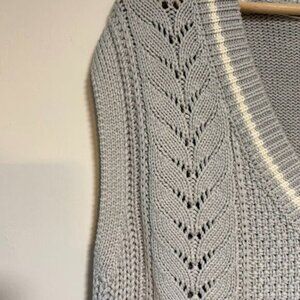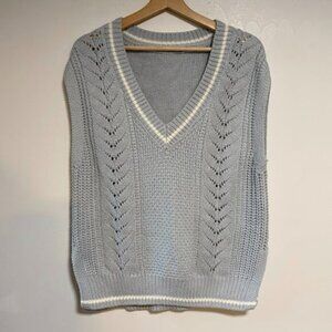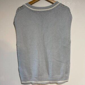 GU V-Neck Pointelle Women's Light Blue White Knit Sweater Vest Size S