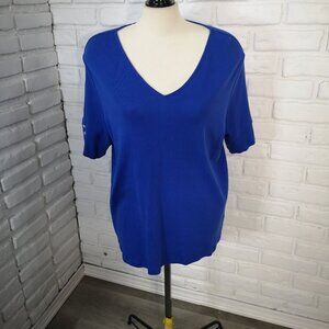 Elevate your wardrobe with the Women's Paisley Top by Lauren Ralph Lauren. Featuring a vibrant multicolor design, this top is perfect for any occasion. Made from 100% cotton and in good used condition. Seam is starting to come undone very slightly under the arm but can be sewn back.