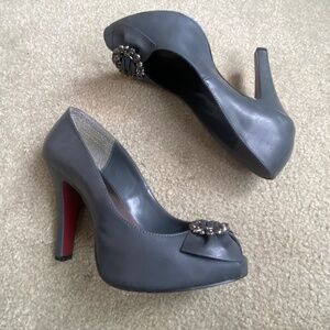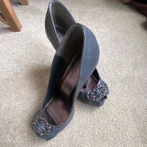 GUC, Le Chateau Grey Open-Toed Heels with Pewter Detailing, Size 8