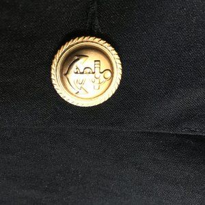 EUC black blazer with gold anchor button and lightly puffed up shoulders. Stretchy material, fake pockets.