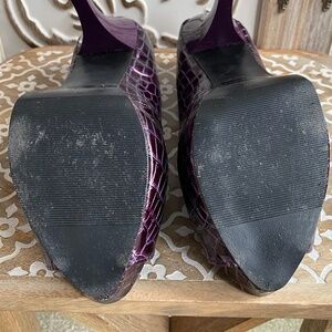 GUC, Qupid Faux Croc Open-Toed Pumps in Purple, Size 8