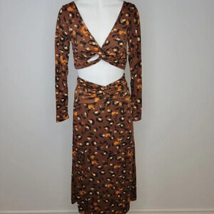 GUC SHEIN Floral Midi Skirt in Dark Green Size XS