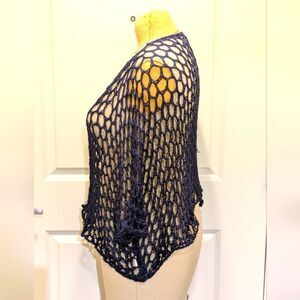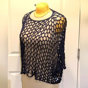 GUC Three Hearts OS Made in Italy Open Weave Navy Blue Top