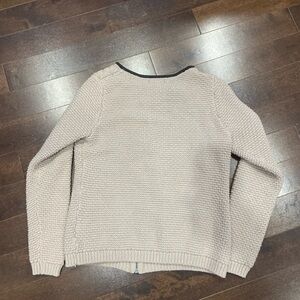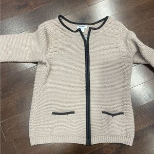 Tan colour with black outlines. Looks like a teddy style jacket. Zip sup seater from old navy in a size small. Shoot me a bundle offer ! Feel free to ask for measurements.